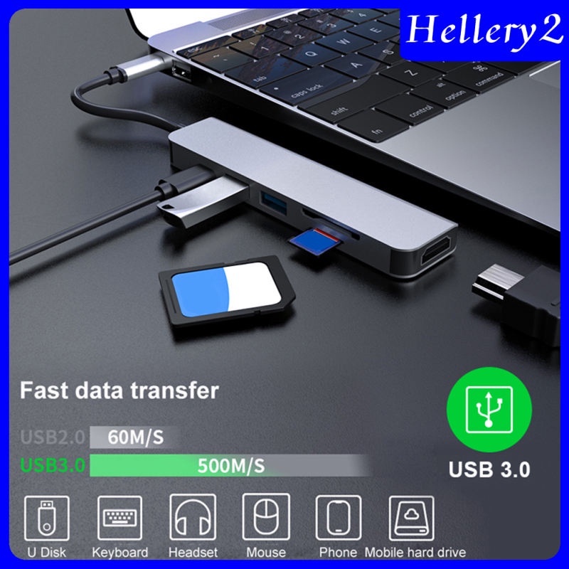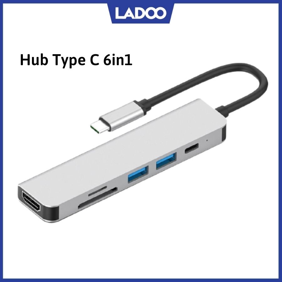 Hub Type C 6in1 - Cổng chuyển đổi Hub USB Type C to SD Card, TF Card, 2 cổng USB, 1 cổng USB-C, 1 cổng HDMI