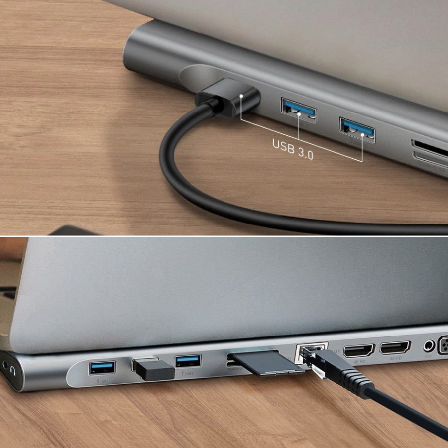 Giới thiệu Hub Type C Baseus 11 in 1 cho Macbook Laptop, Cổng chuyển đổi Type C sang HDMI 4K Usb 3.0 VGA Card Reader RJ45 AUX 3.5mm