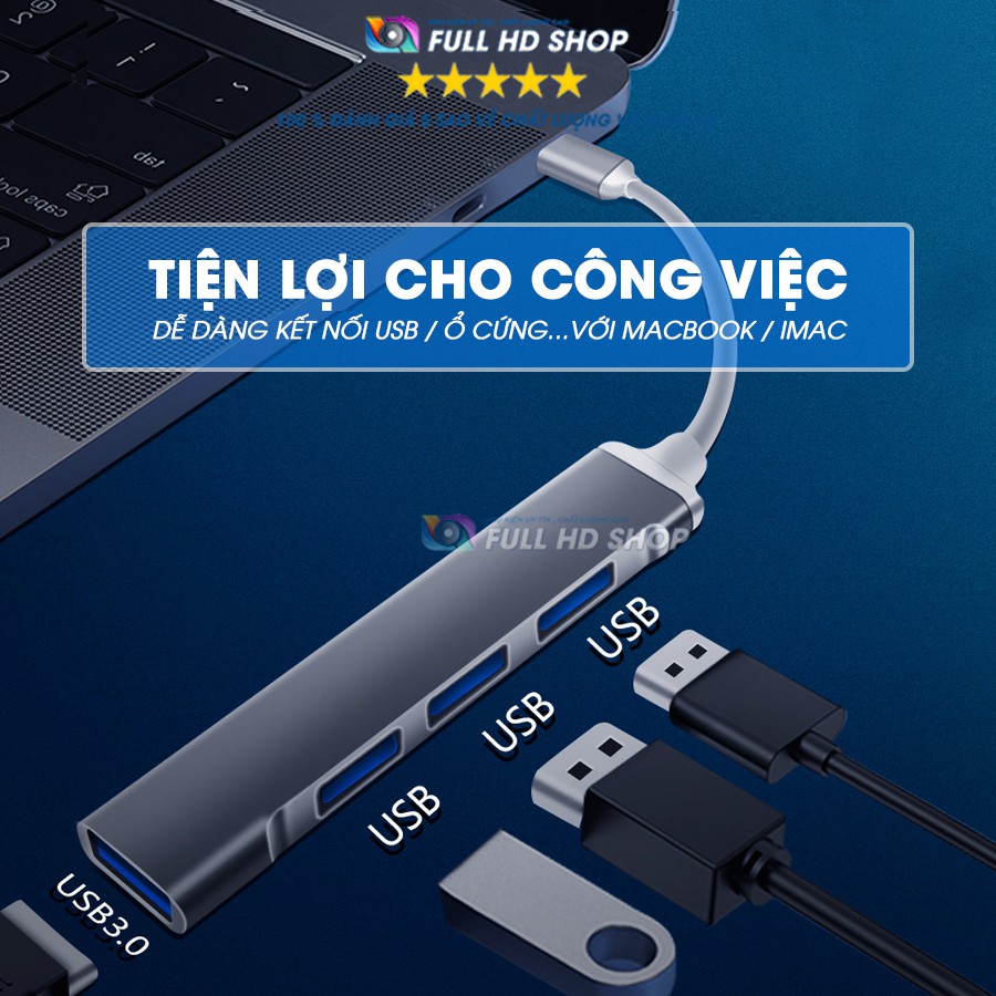 Cổng Chuyển Đổi Macbook Type C Sang USB Phụ Kiện Mac Book Chia Cổng USB Full HD ShopSản phẩm có thể làm cổng chia usb cho các thiết bị kết nối bằng cổng type c