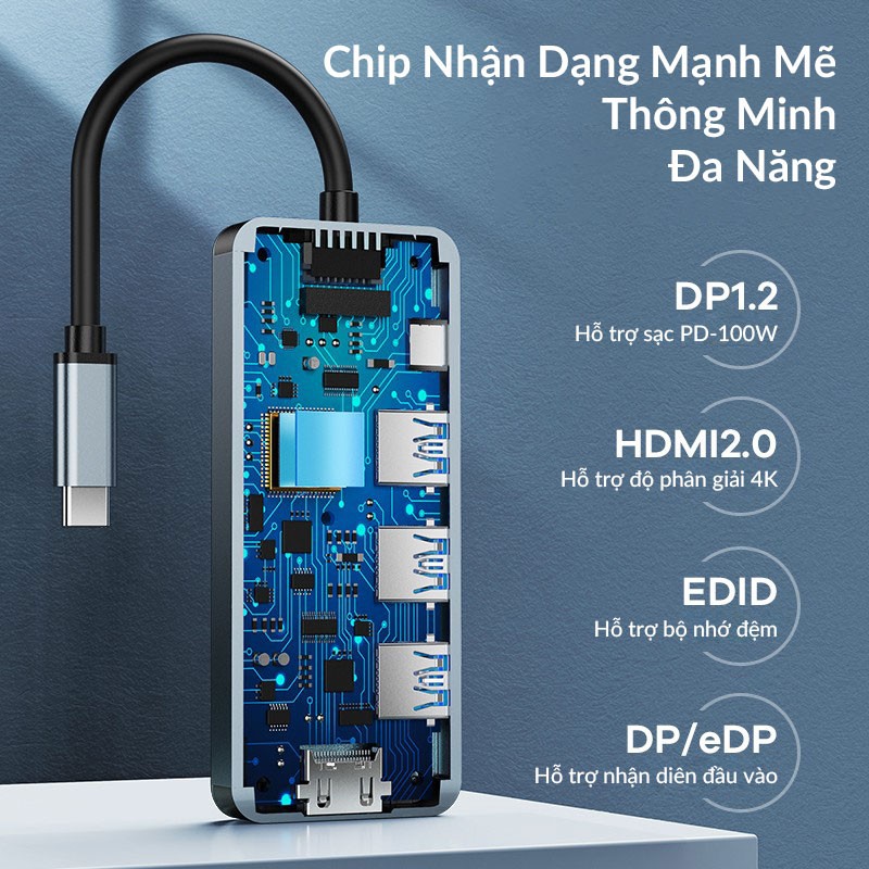 * Hub Remax RU-U5 tích hợp cổng HDMI hỗ trợ xuất hình với độ phân giao cao lên đên 4K