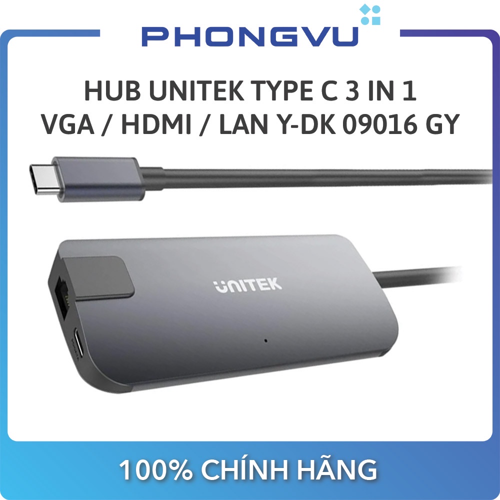 PHONG Vũ Official Store ShopeeHub Type-C -> HDMI +VGA+LAN Unitek Y-DK 09016 GY - Bảo hành 12 tháng