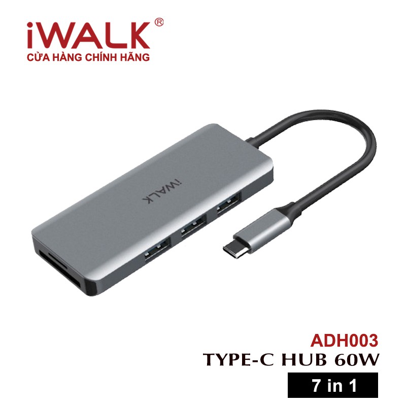 Hub Type-C iWALK 7 in 1, 4K USB-C ra HDMI, cổng sạc PD 60W, 3xUSB3.0 5Gbps