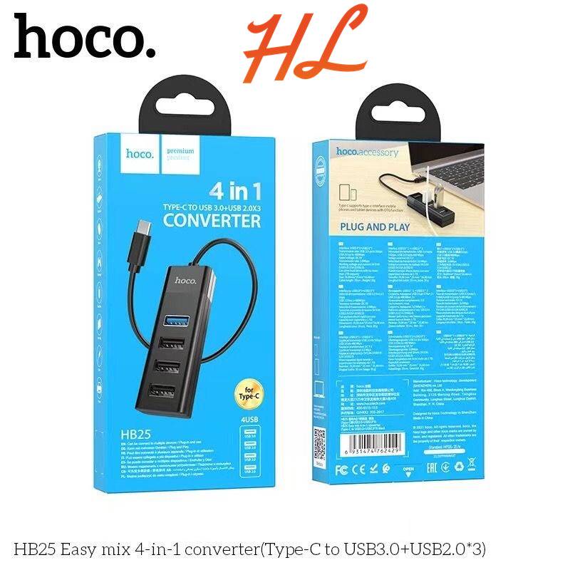 Máy tính & Laptop > Phụ Kiện Máy Tính > Bộ chia cổng USB & Đọc thẻ nhớ || Hub Type C ra USB Hoco HB25 4 Cổng USB, Dây Dài 30CM - Chính Hãng BH 1 Năm - Hưng Long PCCòn hàng