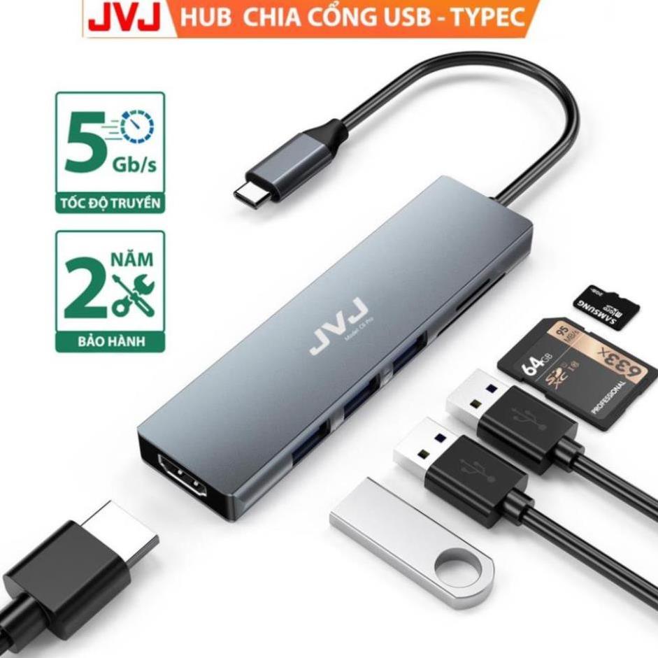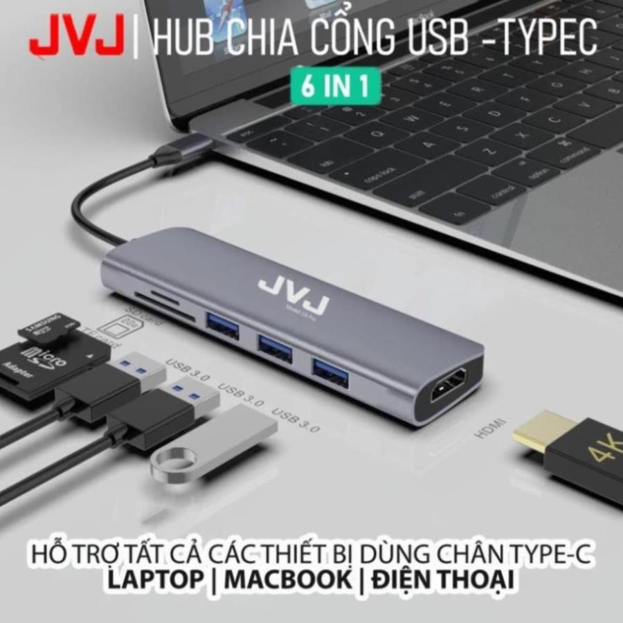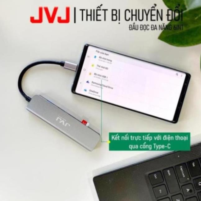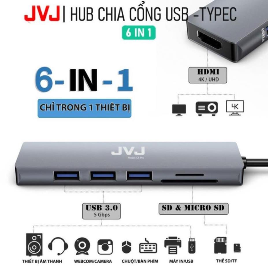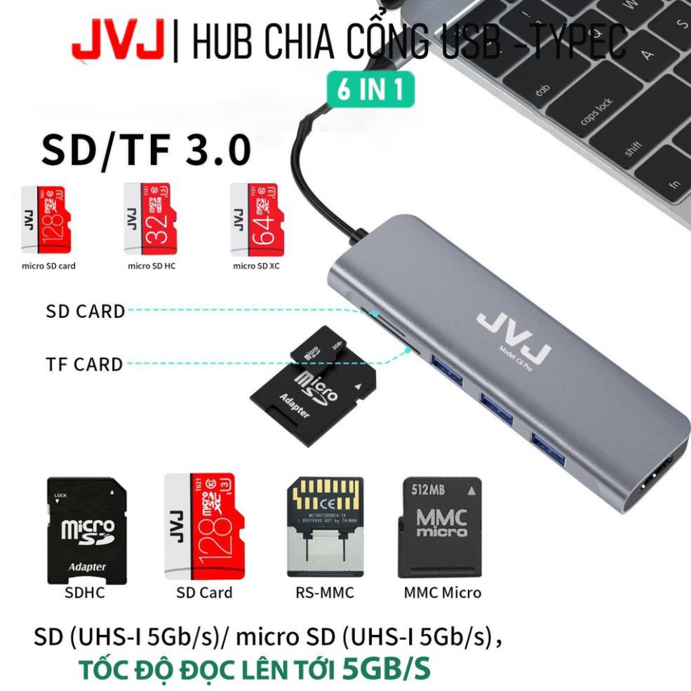 Hub type C USB C6 JVJ 6 trong 1 đa năng cổng chuyển đổi chia cổng USB 3.0 tốc độ 500Mb/s SD, TF, 4K,HDMI cho MacBook lap