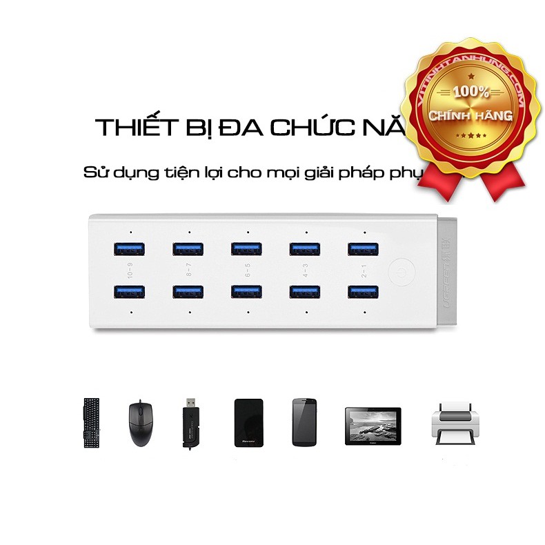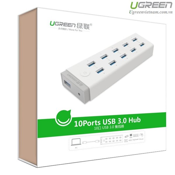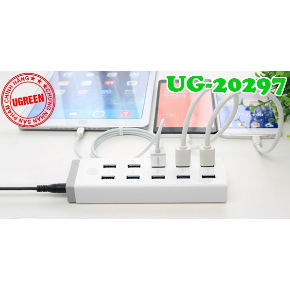 Giới thiệu [Mã 252ELSALE hoàn 7% đơn 300K] HUB USB 10 Cổng USB 3.0 Cao Cấp Có Nguồn 12V 5A Chính Hãng Ugreen 20297