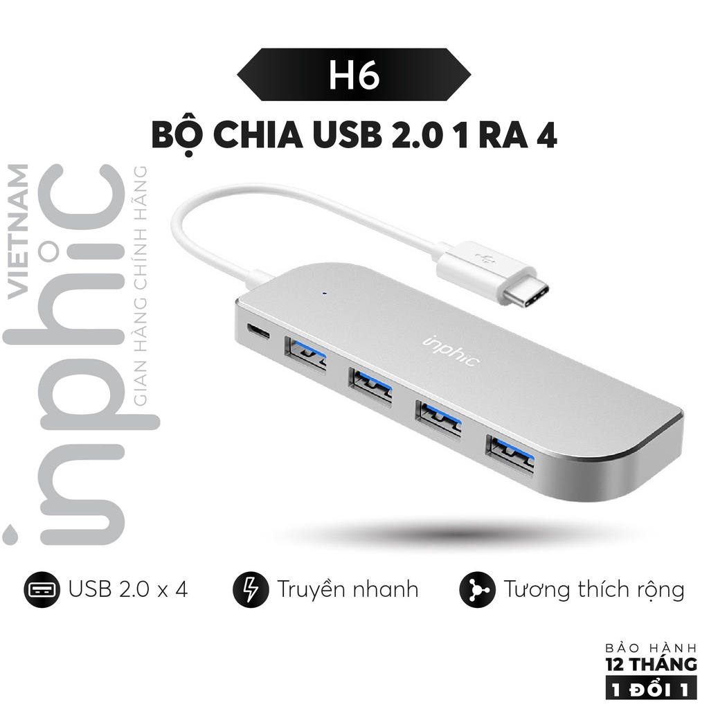 Hub USB 2.0 Năm Cổng INPHIC H6 Hỗ Trợ Tất Cả Các Dòng Máy Tính Để Mở Rộng Thêm Cổng USB - Chính Hãng