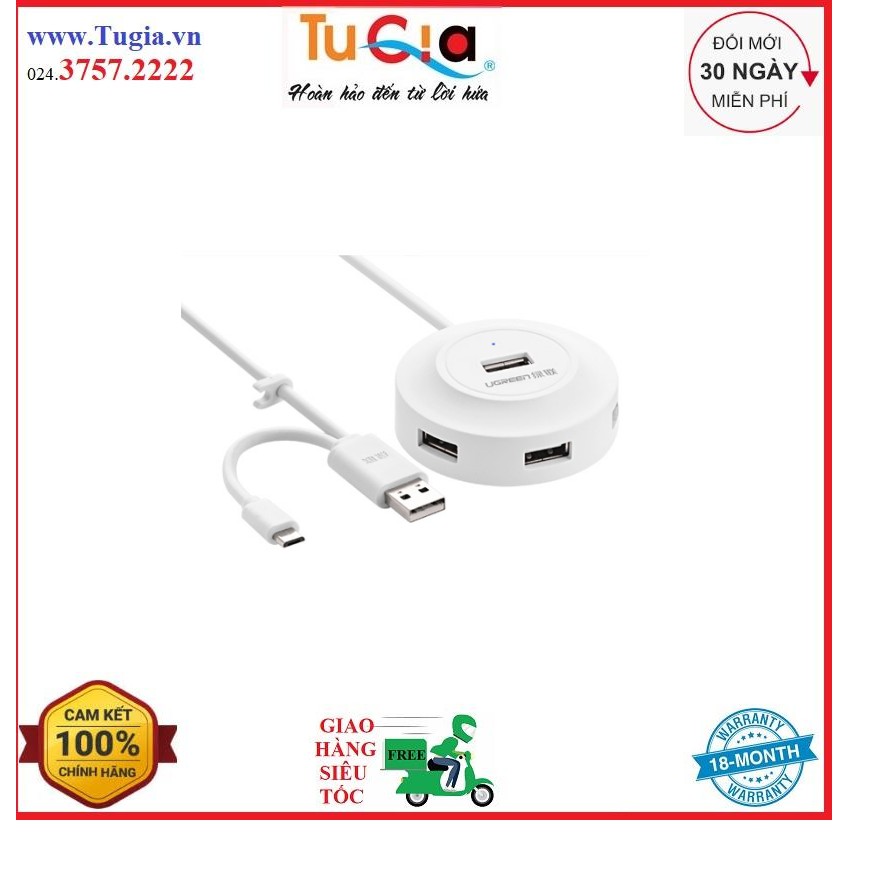 Máy tính & Laptop > Phụ Kiện Máy Tính > Bộ chia cổng USB & Đọc thẻ nhớ || HUB usb 2.0 to 4 port usb hỗ trợ thêm 1cổng OTG Ugreen 20271 15cm - Hàng Chính HãngCòn hàng