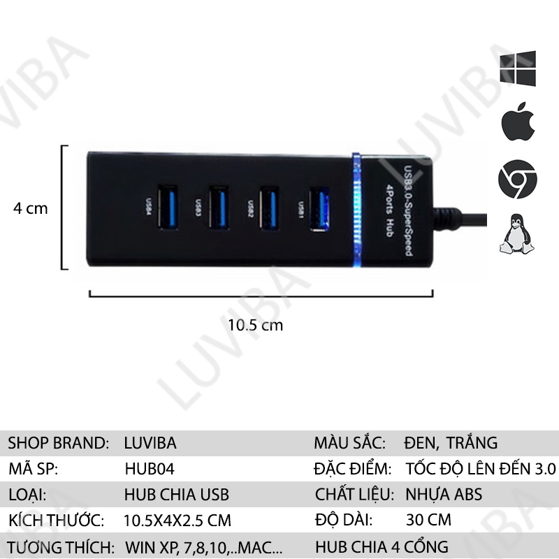 Hub usb 3.0 bộ chia cổng usb 4 port 4 cổng máy tính laptop LUVIBA HB04HUB USB