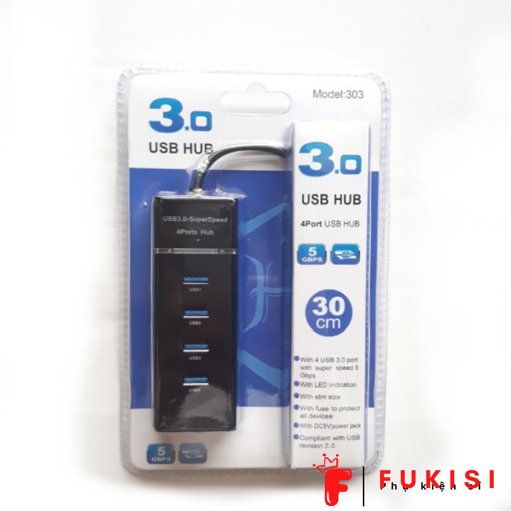 [HUB USB 3.0) Bộ chia USB từ 1 thành 4 cổng có đèn LED - Fukisi