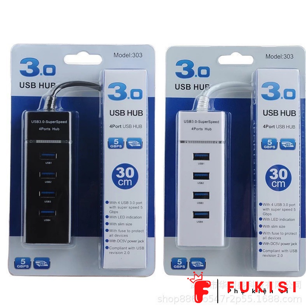 Máy tính & Laptop > Phụ Kiện Máy Tính > Bộ chia cổng USB & Đọc thẻ nhớ || [HUB USB 3.0) Bộ chia USB từ 1 thành 4 cổng có đèn LED - FukisiCòn hàng