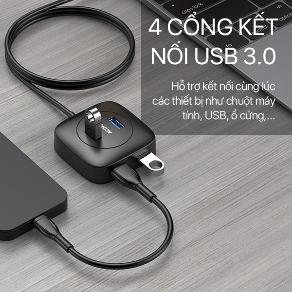 HUB USB 3.0 Bộ Thiết Bị Chuyển Đổi 4 in1 ACOME AH300 Tốc Độ Truyền Tải Cao Công nghệ IC MớiThương hiệu: ACOME