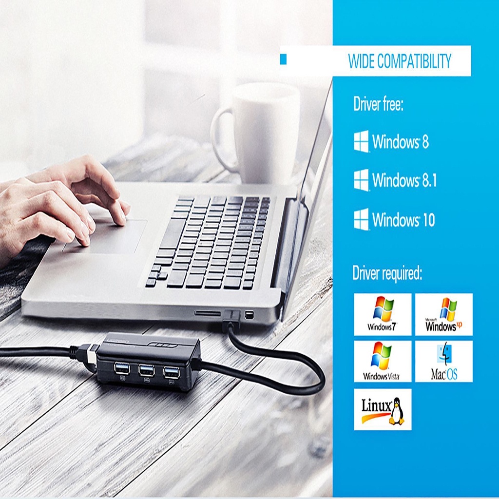 - Tương thích với hầu hết các thiết bị Mac OS/Windows/Linux, riêng với win 8 trở lên chỉ cần cắm là nhận, không cần cài đặt Driver.