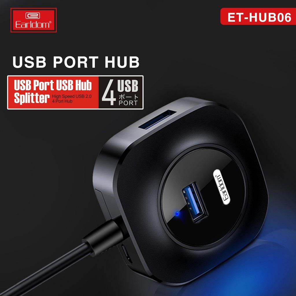 Hub USB 4 cổng Earldom HUB-06 - Bộ chia USB 1 ra 4 - Hàng Chính Hãng bảo hành 12 thángỔ Cắm USB Earldom HUB - 06 (Hỗ Trợ 4 Cổng USB 2.0)