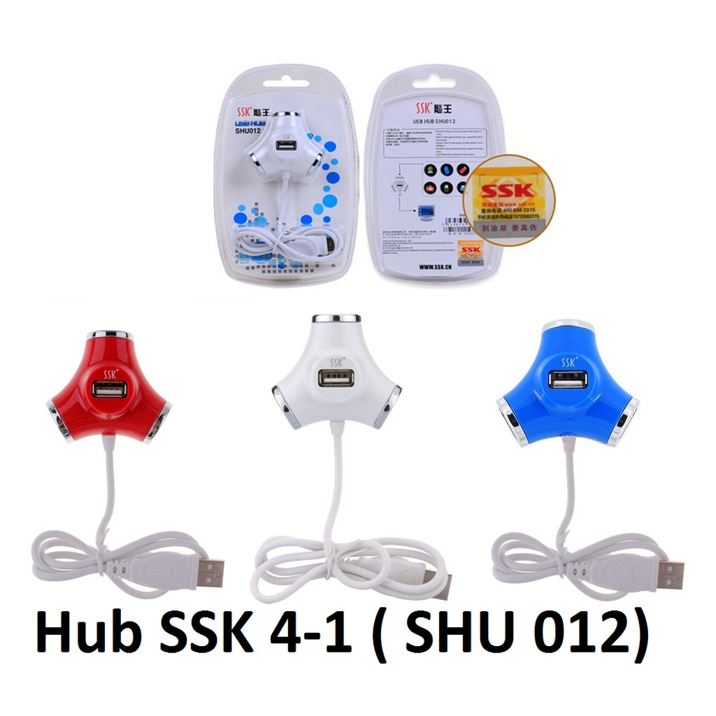 Hub USB bộ chia cổng USB từ 1 ra 4 cổng SSK SHU 012Màu sắc: cam, xanh, đỏ