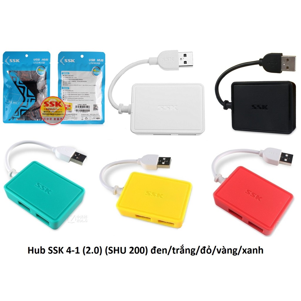 Hub USb bộ chia tín hiệu USB 2.0 từ 1 ra 4 cổng SSK SHU 200 màu trắng, đen lựa chọnMàu sắc: đen, trắng