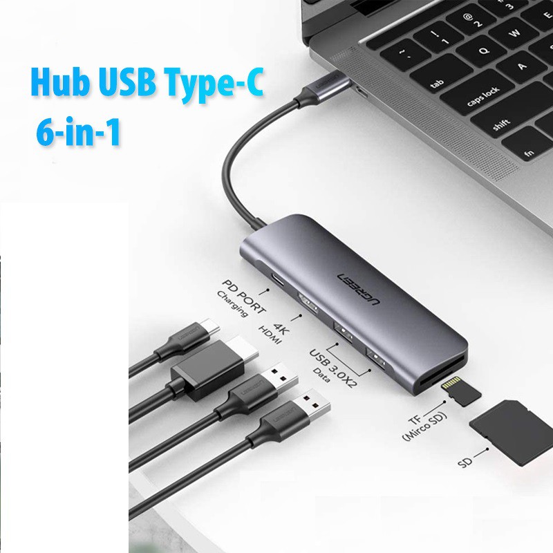 Giới thiệu Hub USB-C 6 in 1 Ugreen 70411 (USB-C ra HDMI HDMI + 2 USB 3.0 + SD/TF +Sạc ngược USB-C )