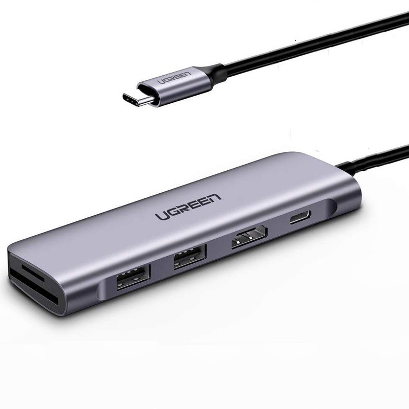 Hub USB-C 6 in 1 Ugreen 70411 (USB-C ra HDMI HDMI + 2 USB 3.0 + SD/TF +Sạc ngược USB-C )