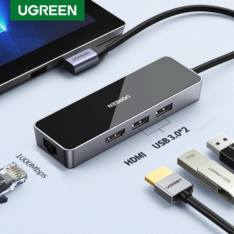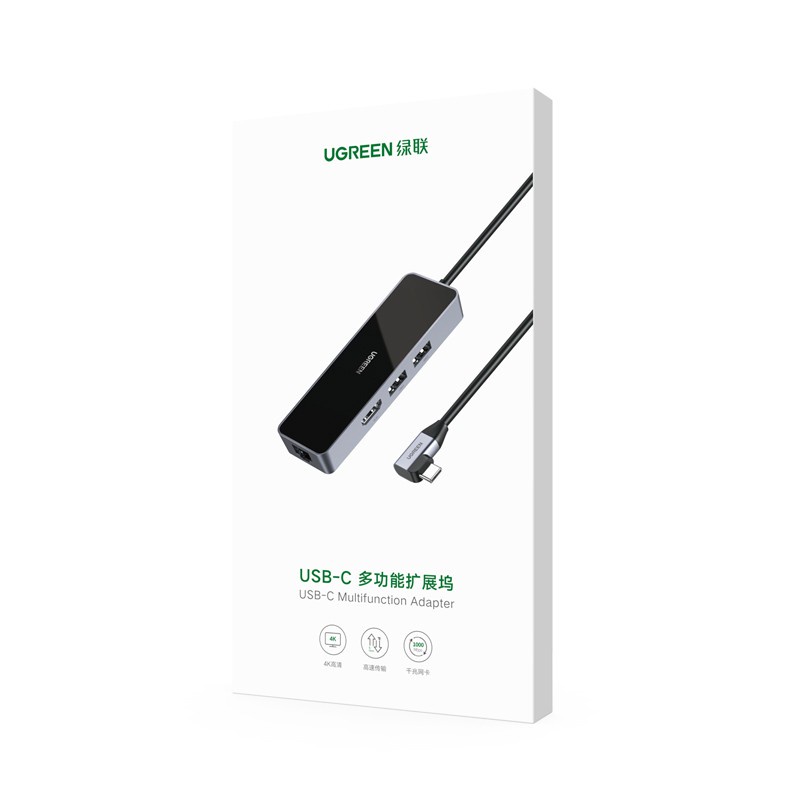 Hub USB C Chính hãng Ugreen 80546 CM350 (Type C ra HDMI 4K+2USB3.0+Lan 1GB)
