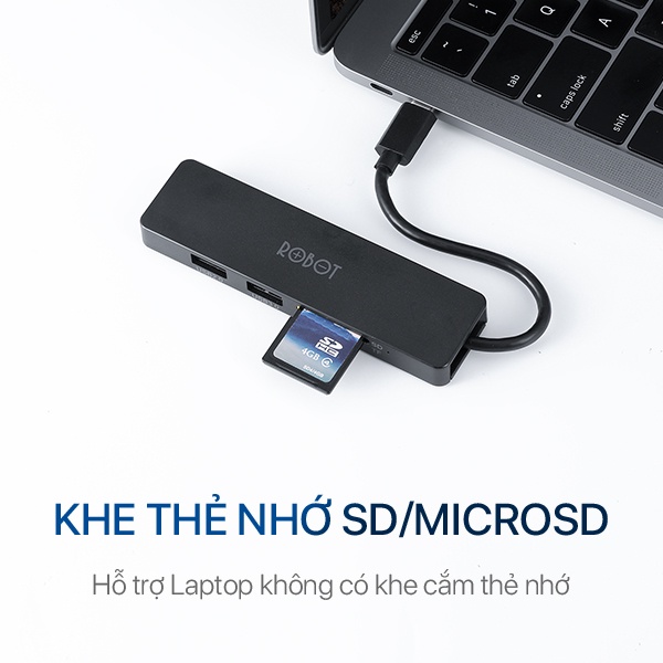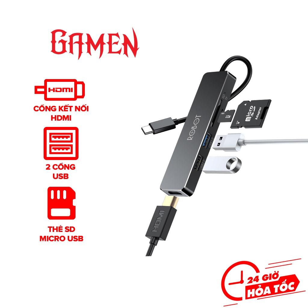 HUB CHUYỂN ĐỔI ĐA NĂNG 5 TRONG 1 ROBOT HT240S TỪ CỔNG TYPE-C SANG CỔNG USB 3.0/ HDMI/ SD/ MICRO SD - BẢO HÀNH 12 THÁNGSản phẩm chính hãng ROBOT
