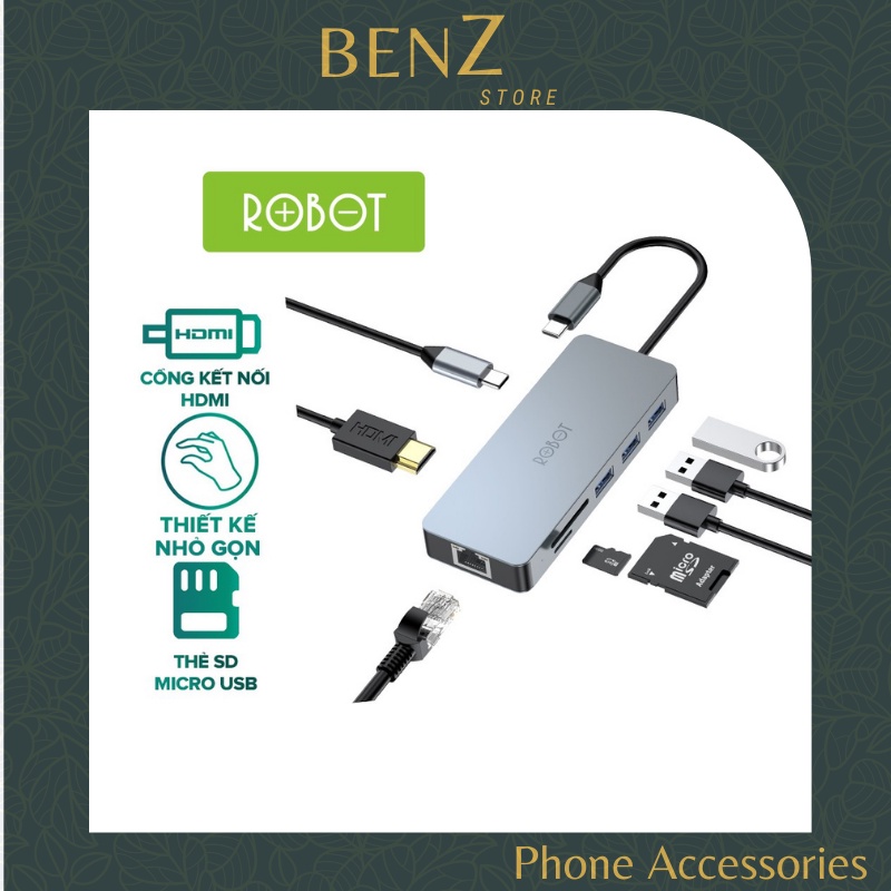 Giới thiệu HUB USB-C Chuyển Đổi Đa Năng ROBOT HT380 8 In 1 Nhỏ Gọn HDMI PD SD TF PD Cho Macbook Matebook Hàng Chính Hãng BenZ Store