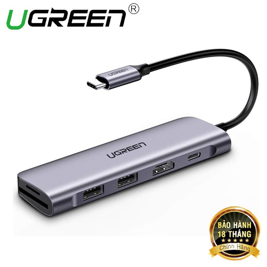 Hub USB-C đa năng 6 in 1 Ugreen 70411 ra HDMI, USB 3.0, USB PD, khe đọc thẻ nhớ - Hapustore