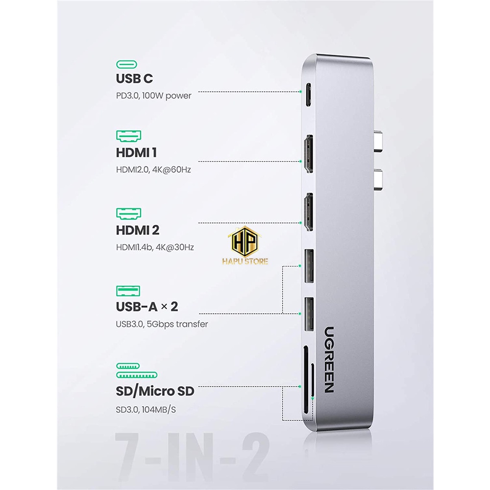 Hub USB-C đa năng 7 in 2 Ugreen 80548 dùng cho Macbook cao cấp - Hapustore