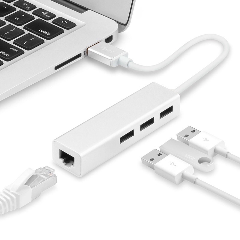 Máy tính & Laptop > Phụ Kiện Máy Tính > Bộ chia cổng USB & Đọc thẻ nhớ || HUB USB chia 1 ra 3 cổng USB 3.0 và 1 cổng LAN vỏ nhômCòn hàng
