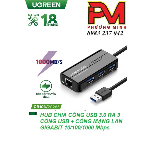 Hub USB ra 3 cổng USB 3.0 + cổng Mạng Gigabit 10/100 / 1000Mbps Ugreen 20265 cao cấp _Hàng chính hãngBộ chia USB 3.0 tich hợp cổng Mạng Gigabit Ugreen 20265 Combo - 3,0 Gigabit 10/100 / 1000Mbps mạng Ethernet + 3 cổng USB 3.0 Hub có thể không chỉ có thêm một giao diện mạng cho máy tính của bạn thông qua USB, mà còn để kết nối máy tính của bạn với nhiều thiết bị, chẳng hạn như máy ảnh kỹ thuật số, quạt máy tính, điều khiển flash........