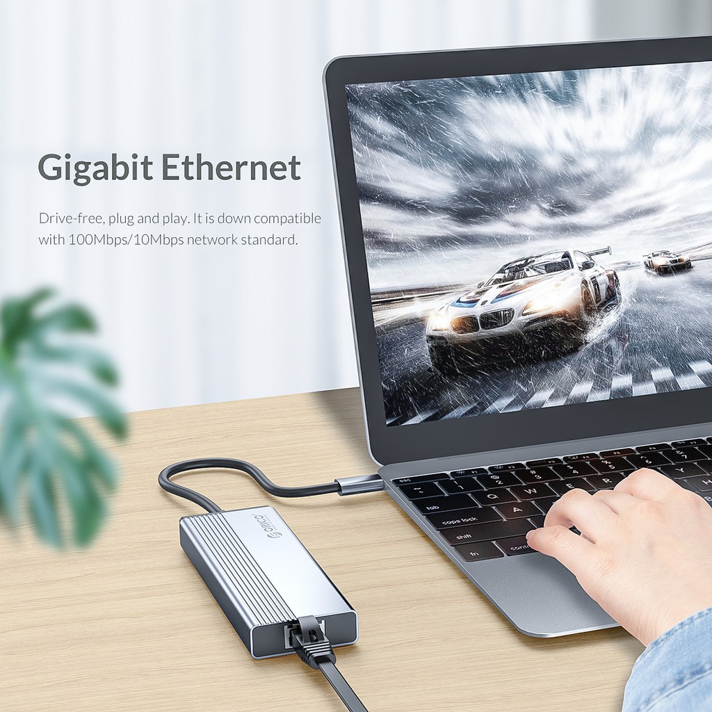 Hub USB Type-C 5 Cổng HDMI 4K 30Hz/ USB 3.0/PD ORICO 5SXH-GY - Hàng Chính Hãng