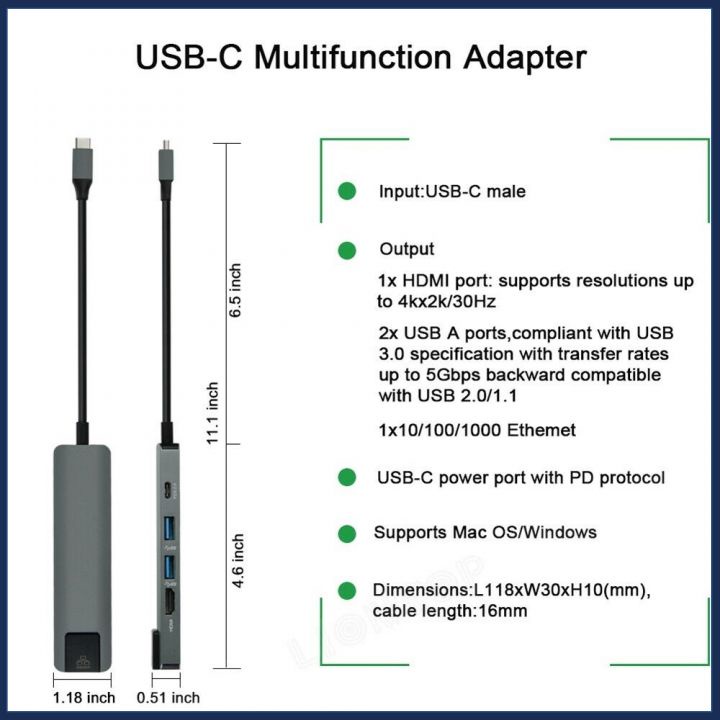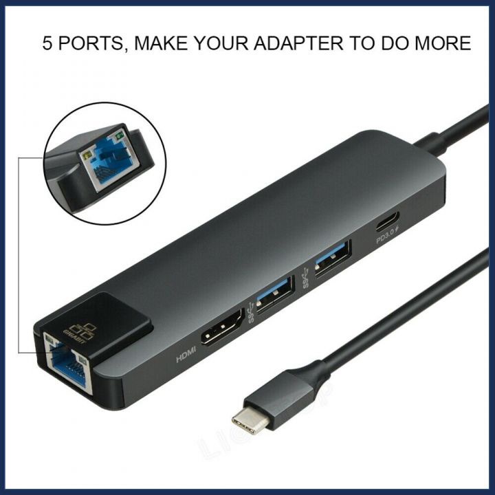 Giới thiệu Hub USB Type C 5 in 1 To HDMI, RJ45, 2 x USB 3.0, USB Type C - Hàng Chính Hãng