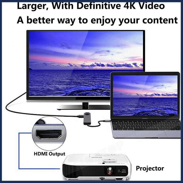 Ngoài ra, Cáp Chuyển Đổi USB Type C 5 in 1 còn chuyên sử dụng cho Macbook dùng để chia sẻ dữ liệu, phát hình ảnh qua màn hình TV và máy chiếu hoặc kết nối giữa Macbook với cổng LAN thông qua cổng RJ45