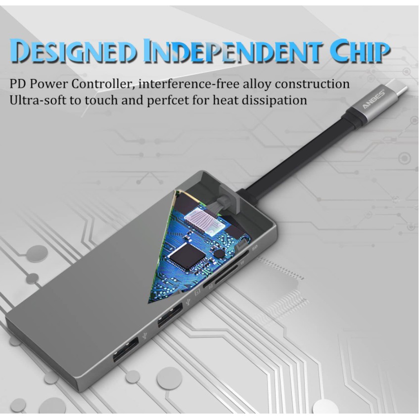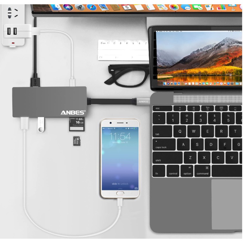 Hub USB Type-C ANBES 6 chức năng trong 1 có các chức năng sau:- 1 cổng HDMI hỗ trợ độ phân giải 4k
