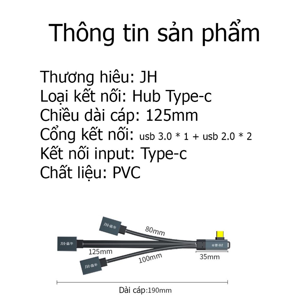 ➡️100007774301: hub type-c 3 cổng usb ( 3.0 * 1 + 2.0 * 2) jack Type-c 90 độ