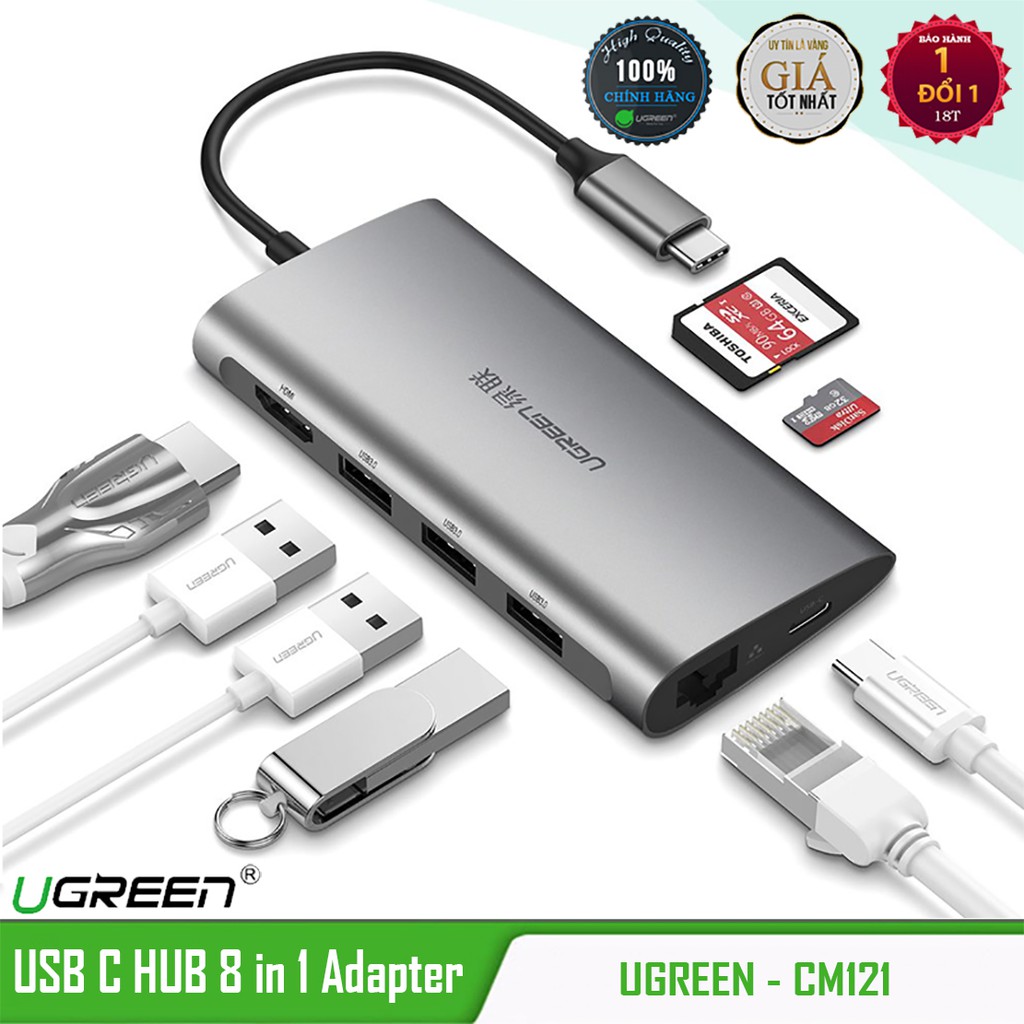 Máy tính & Laptop > Phụ Kiện Máy Tính > Bộ chia cổng USB & Đọc thẻ nhớ || Hub USB Type-c ra HDMI, USB 3.0, Ethernet, TF/SD Card Cao Cấp UGREEN CM121Còn hàng