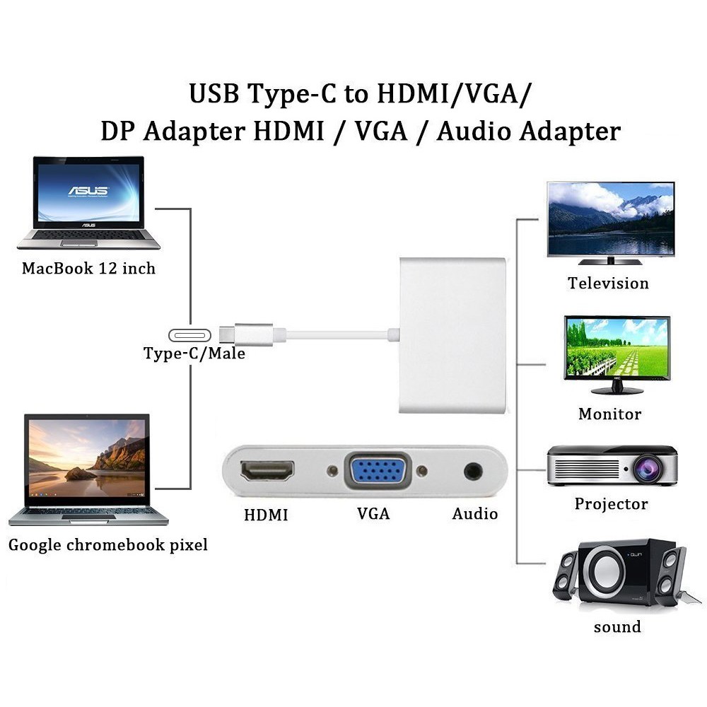 Hub USB Type-C ra HDMI, VGA cho Macbook, MHL