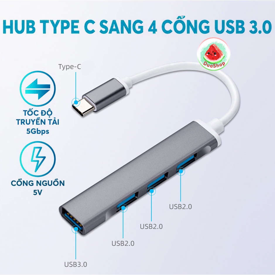 Máy tính & Laptop > Thiết Bị Lưu Trữ > USB & OTG || Hub USB Type C Sang 4 Cổng USB 3.0 Kết Nối Chuyển Đổi Cho Macbook Laptop PC- HUB PESTON Vỏ Kim Loại Cao CấpCòn hàng