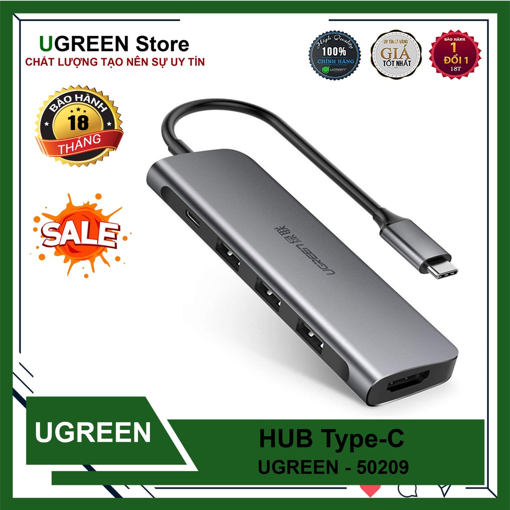 Thông tin sản phẩm HUB USB type-C sang HDMI/ Hub USB 3.0 hỗ trợ sạc cổng USB-C UGREEN 50209 Cao Cấp- Hãng sản xuất : Ugreen