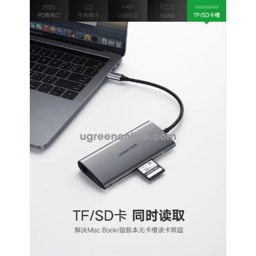 [Mã 155ELSALE giảm 7% đơn 300K] Hub USB type-C sang HDMI/Ethernet/Hub USB 3.0/Card SD/TF Ugreen 50516 Chính hãng