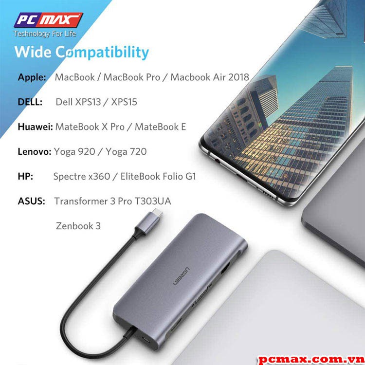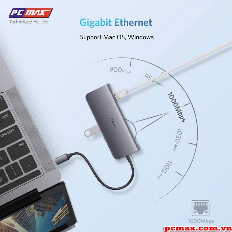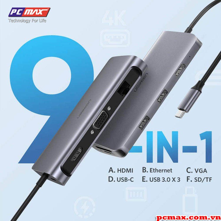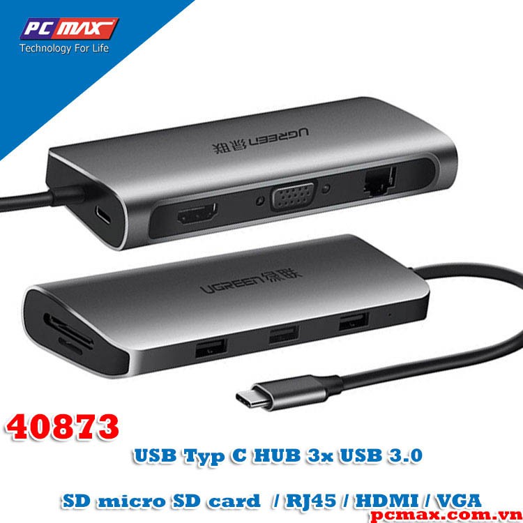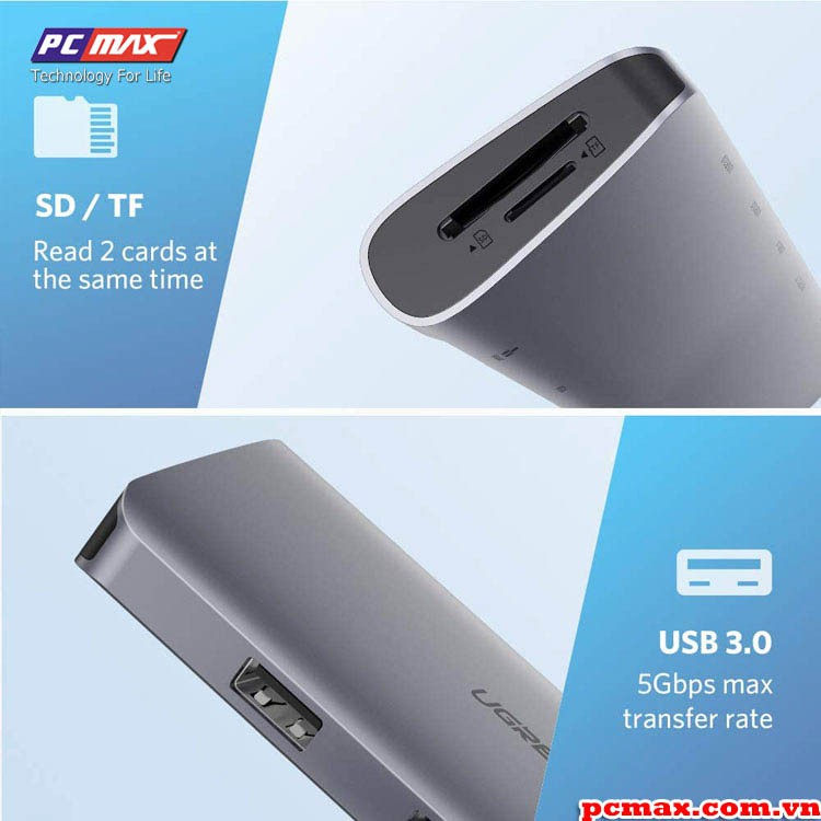 Thông tin chi tiết USB type C Ugreen 40873 sang USB 3.0, HDMI, LAN, typeC, SD card
