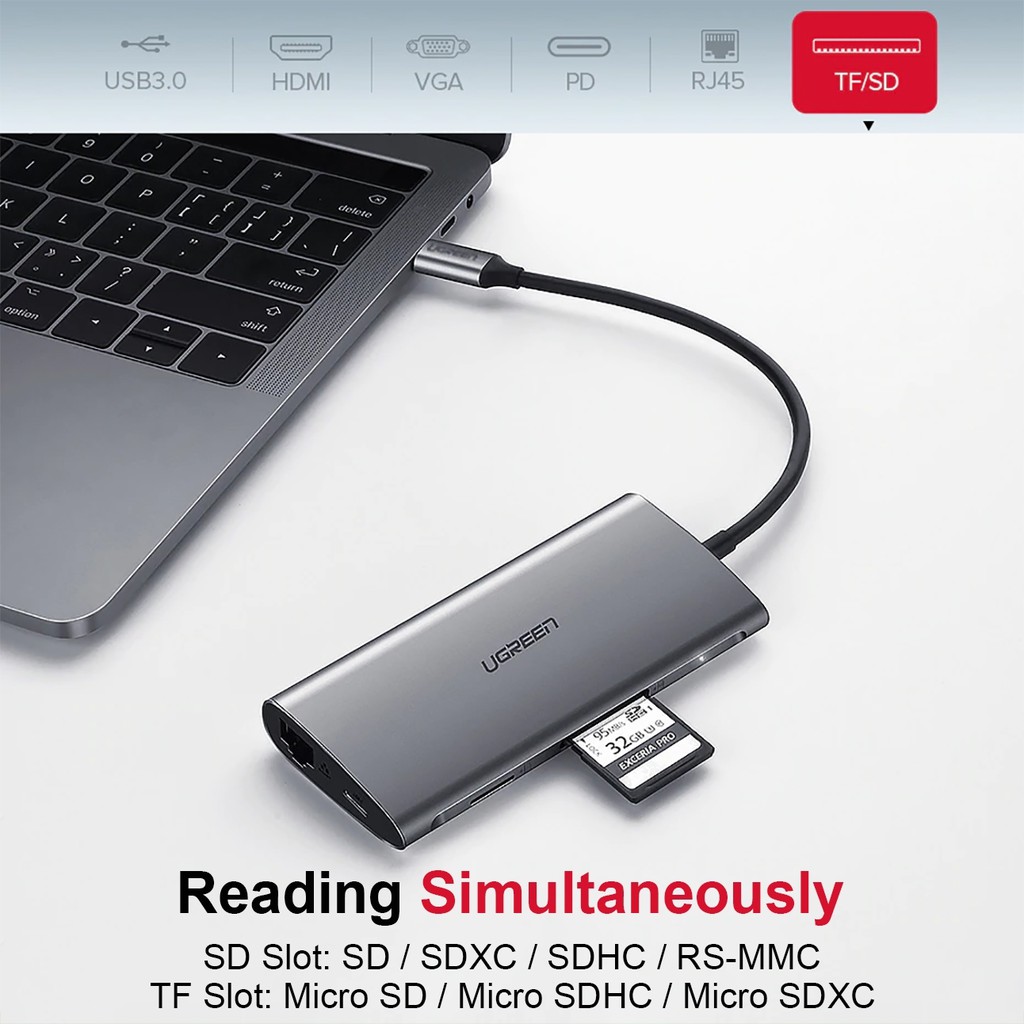 Giới thiệu Hub USB type-C to HDMI/Hub USB 3.0/SD/TF/Lan Gigabit chính hãng Ugreen 50538