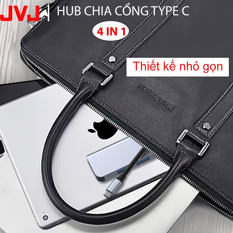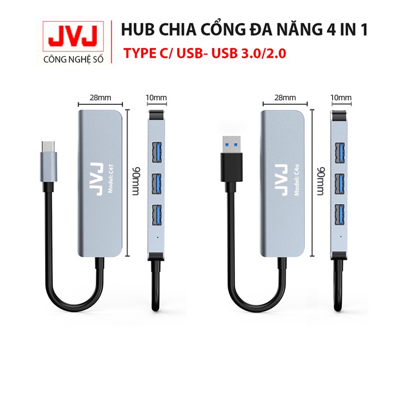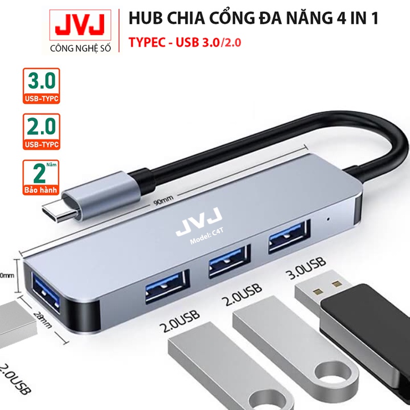 Hub USB typec C4 JVJ 4 trong 1 cổng chuyển đổi chia cổng Type-C/USB sang USB 3.0/2.0 cho MacBook laptop - Bảo hành 2 năm