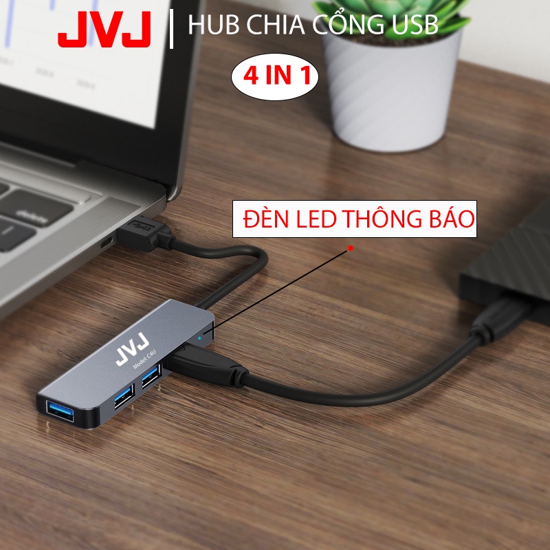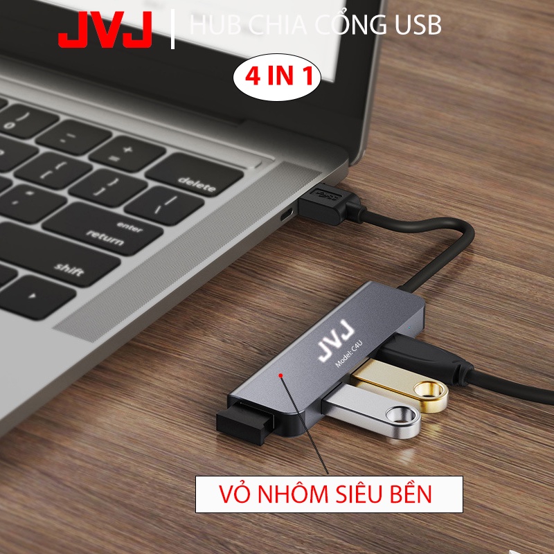 Hub USB typec C4 JVJ 4 trong 1 cổng chuyển đổi chia cổng Type-C/USB sang USB 3.0/2.0 cho MacBook laptop - Bảo hành 2 năm chính hãngLƯU Ý: Bởi vì vật liệu hợp kim Al tản nhiệt và có nhiều chức năng nên sản phẩm có thể sẽ ấm hơn một chút khi sử dụng, đó là hiện tượng bình thường và không ảnh hưởng đến thiết bị