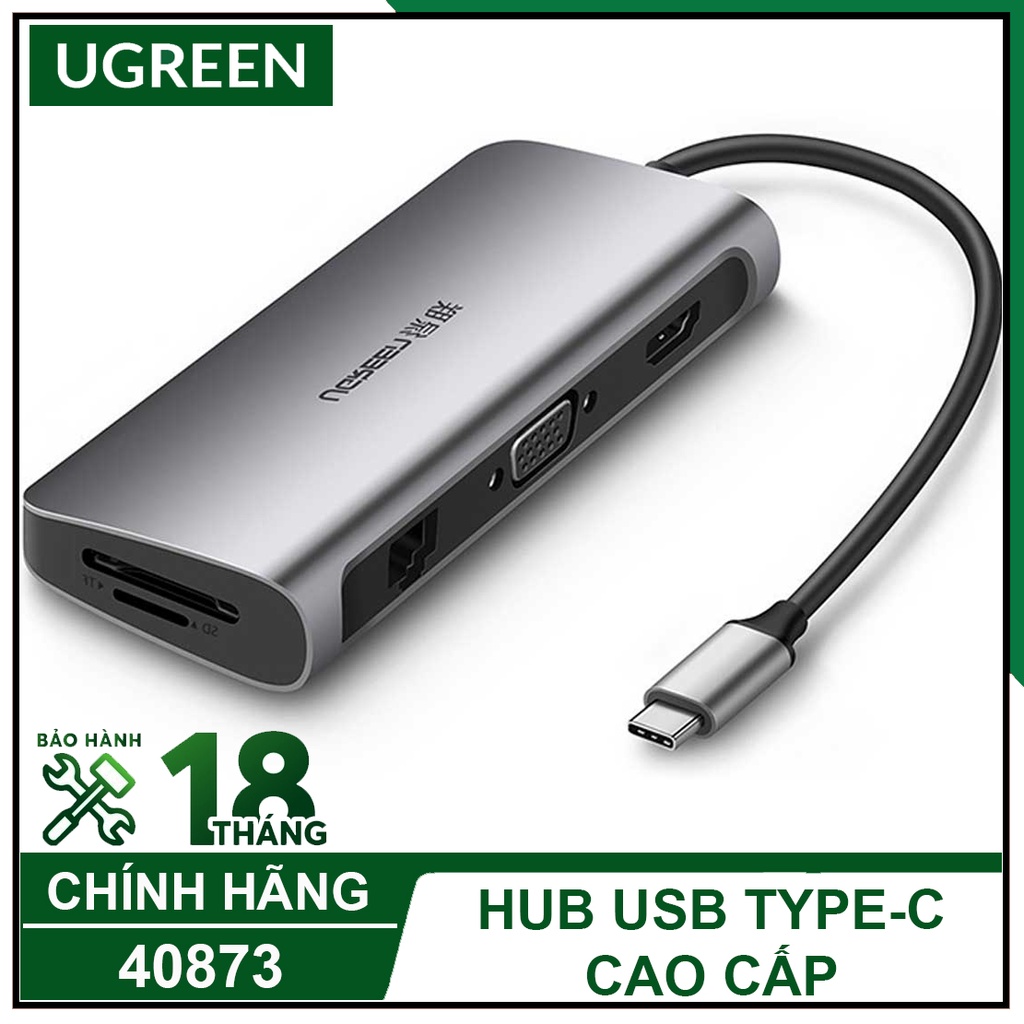 Hub Usb TypeC Ra Hdmi, Vga, Usb 3.0, Lan, TF Và SD Cao Cấp, UGREEN 40873 Chính Hãng