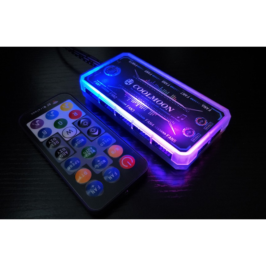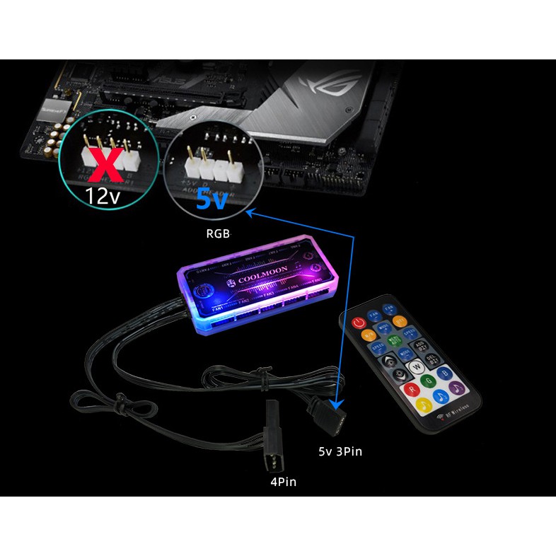 Máy tính & Laptop > Phụ Kiện Máy Tính > Bộ chia cổng USB & Đọc thẻ nhớ || Bộ Hub Và Remote Coolmoon, Hỗ trợ Aura Sync, Gigabyte Fusion, Mystic Light Sync - Thay Đổi Hiệu Ứng Theo NhạcCòn hàng