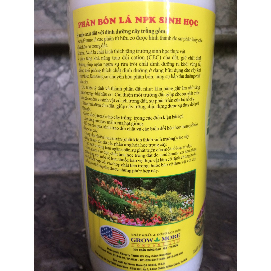 • THÀNH PHẦN:N: 3%, P2O5: 2%, K2O: 2%, Humic Acid 6,3%; Fulvic Acid 1,2%; Fe, Cu, Mn…