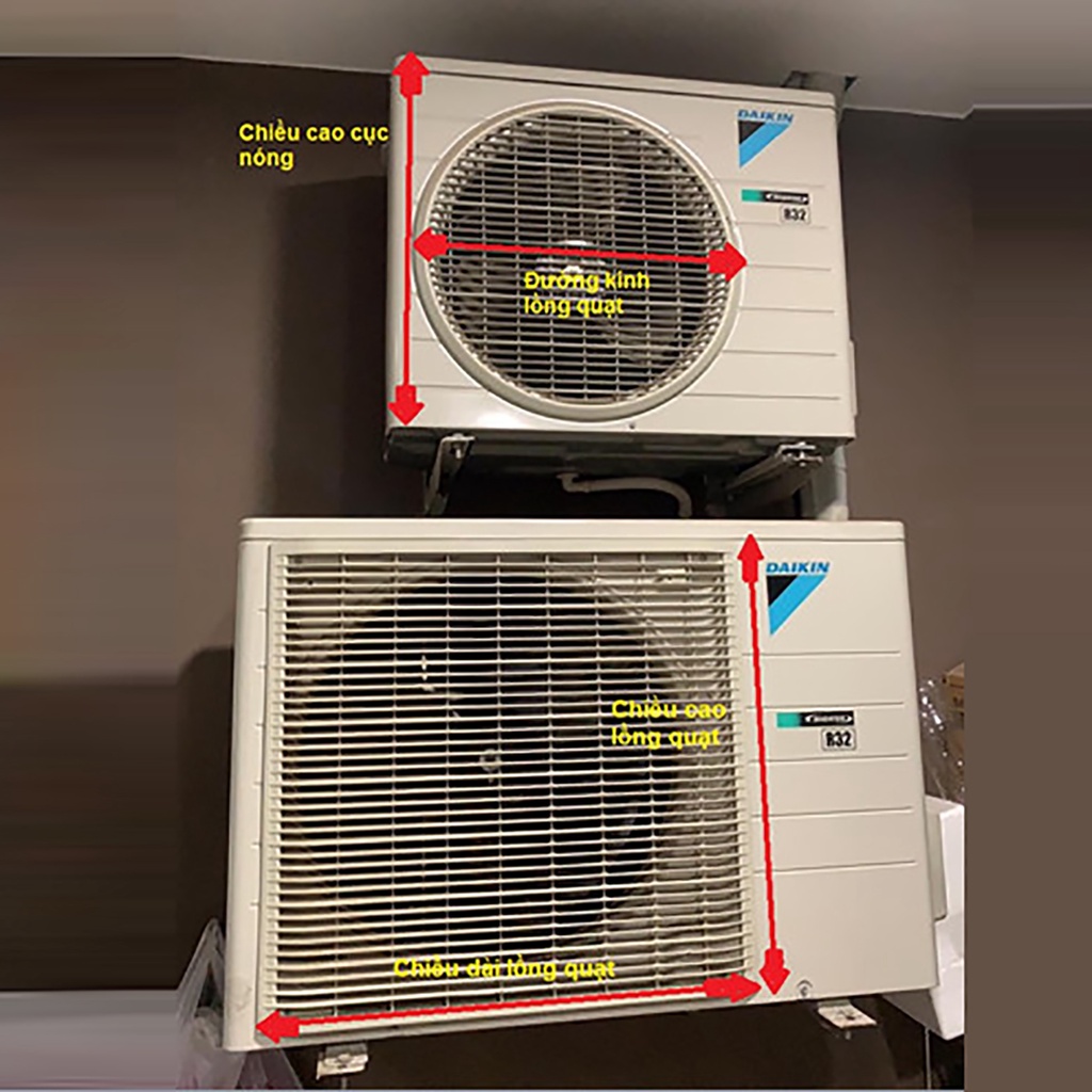 + Đường kính lồng quạt và chiều cao cục nóng với lồng quạt “tròn”