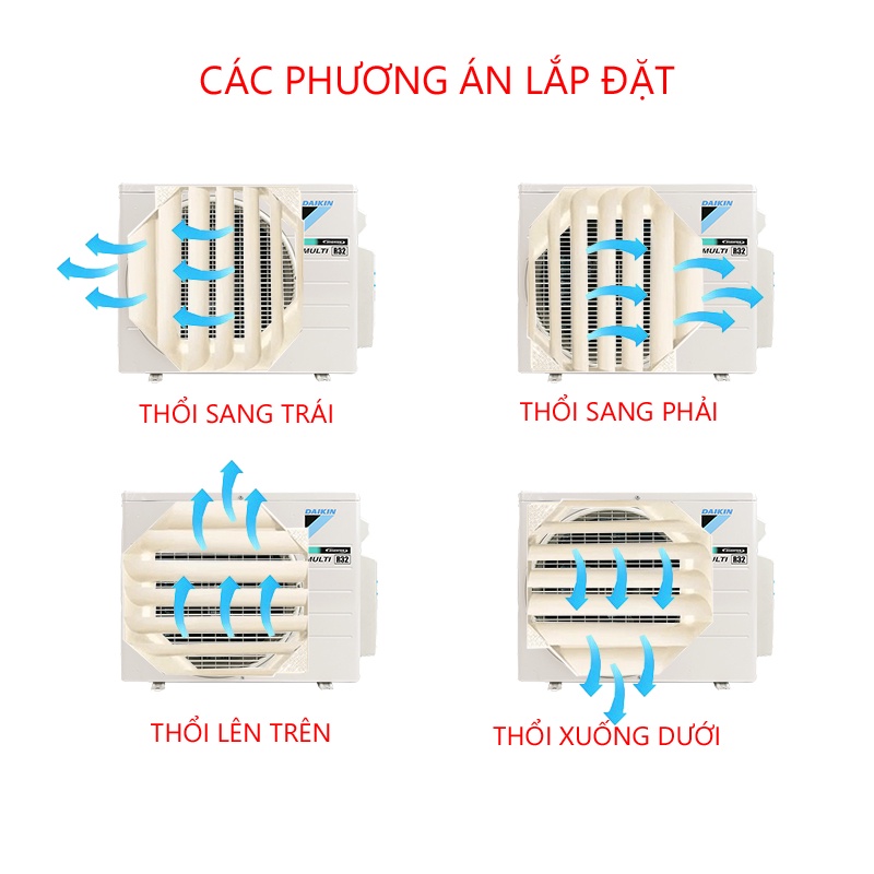 - Chuyển hướng gió cục nóng dễ lắp đặt, không phải tháo nắp nhựa bảo vệ.