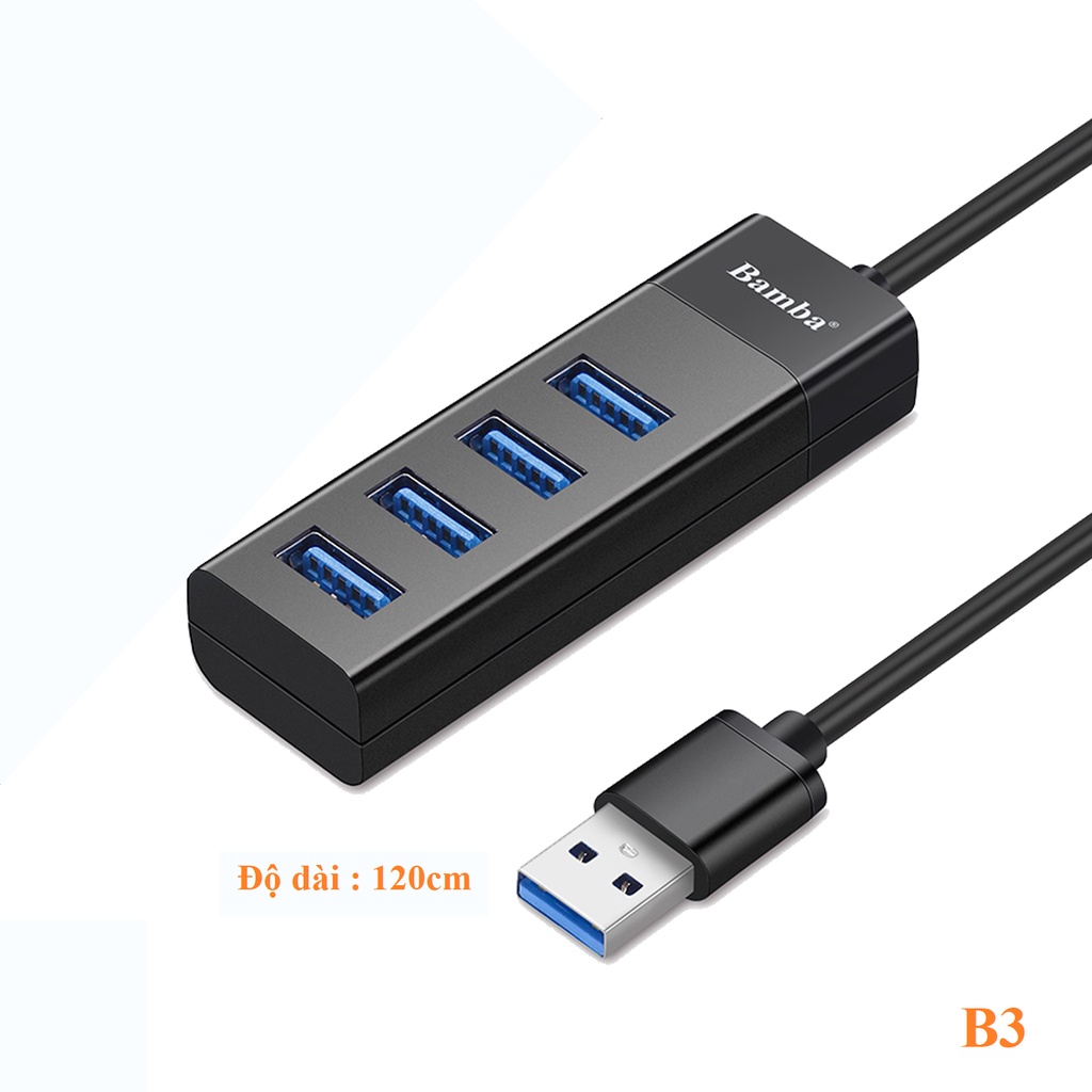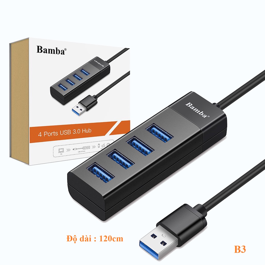 Bảo hành 12 thángBộ Hub 4 cổng USB BAMBA B3 là thiết bị sở hữu một thiết kế thông minh giúp bạn dễ dàng truyền dữ liệu từ laptop qua 4 USB 3.0 tốc độ cao cùng 1 lúc.