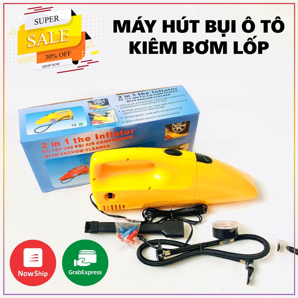 Hút Bụi ô tô 12v kèm bơm lốp siêu mạnh (màu vàng) hút bui siêu mạnh