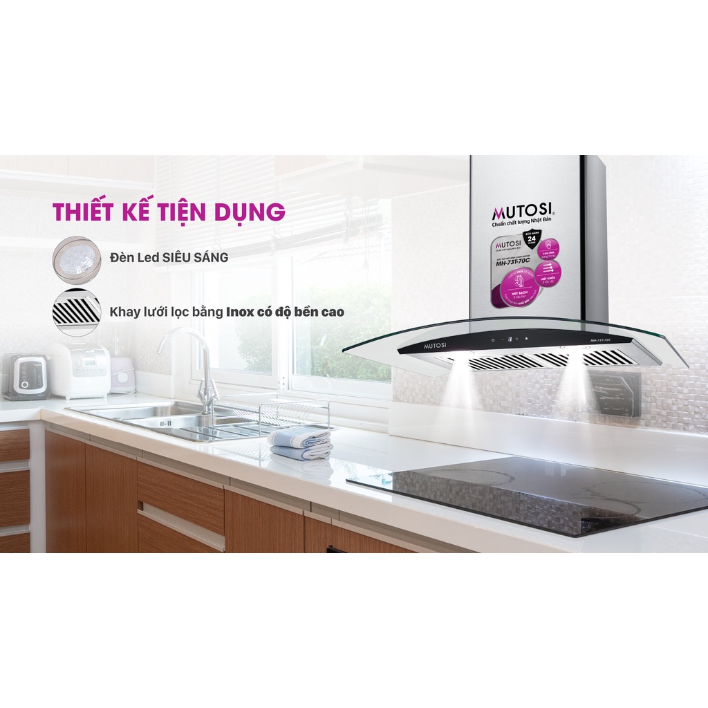 Máy hút mùi kính cong cảm ứng Mutosi MH-73T-70C có những tính năng:
